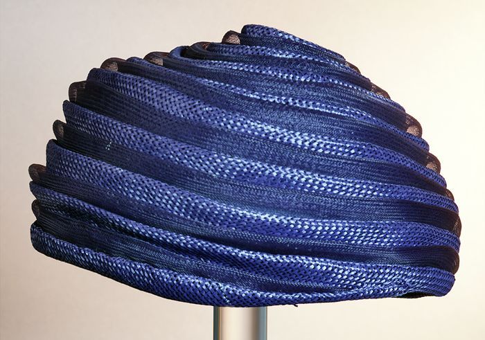 Ronde donkerblauwe dameshoed zonder rand, spiraalvor...
