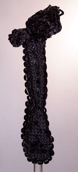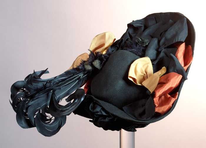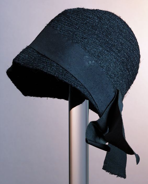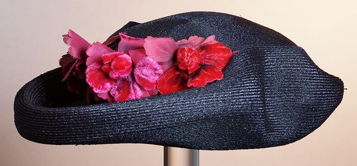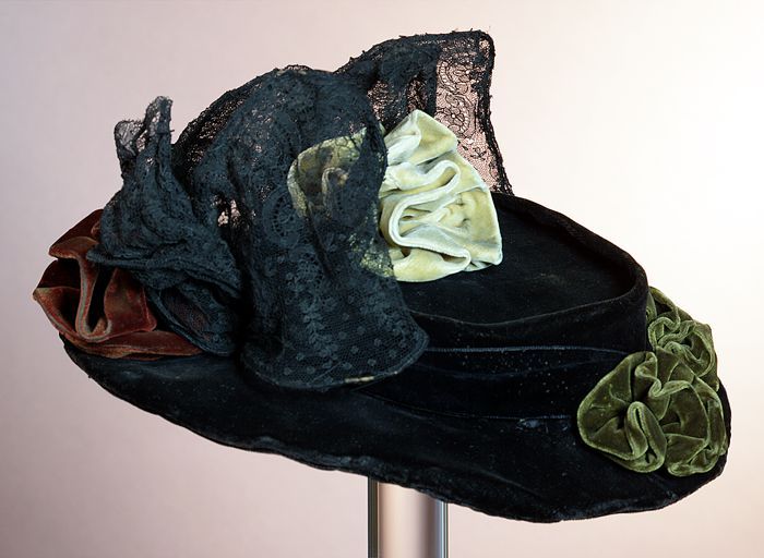 Dameshoed, zwart fluweel met zwart fluweelband, opst...
