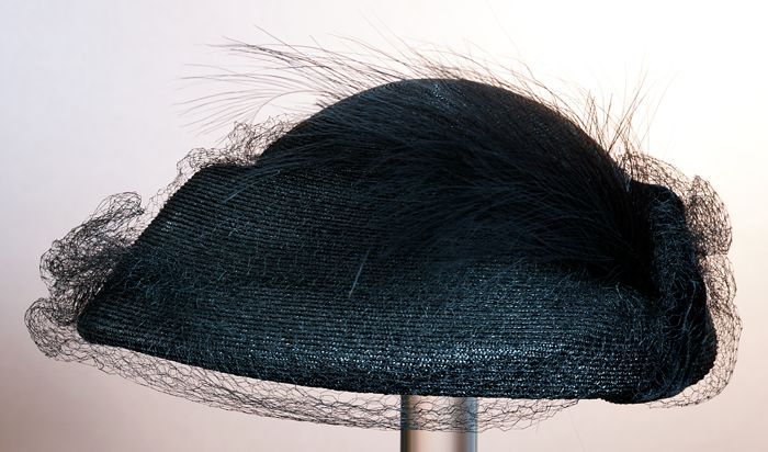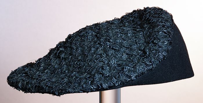 Dameshoed, baret van zwart vilt en zwart kunststof b...
