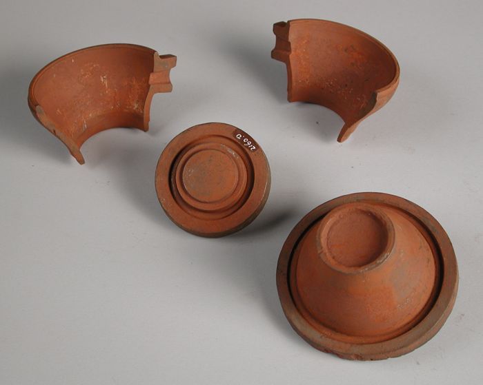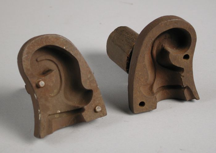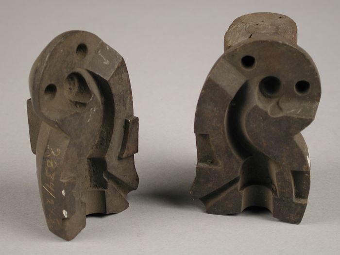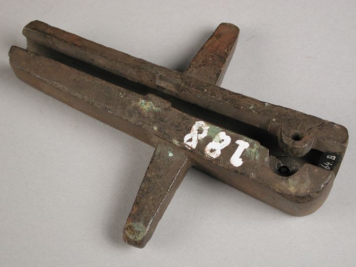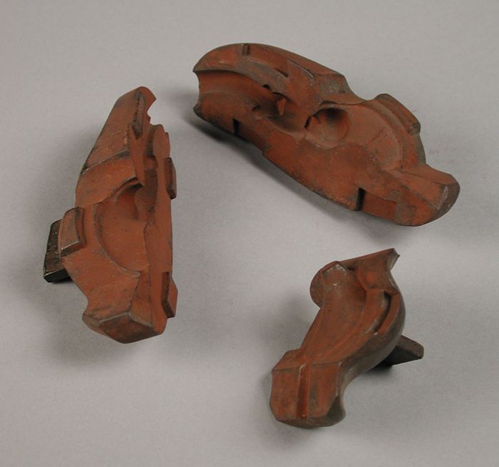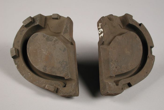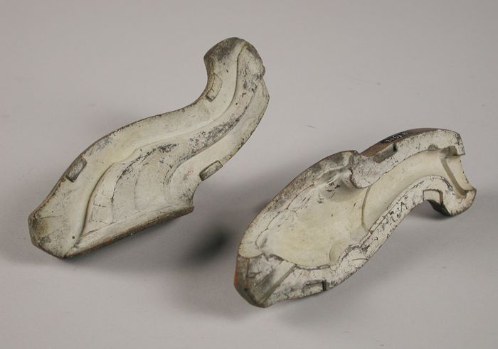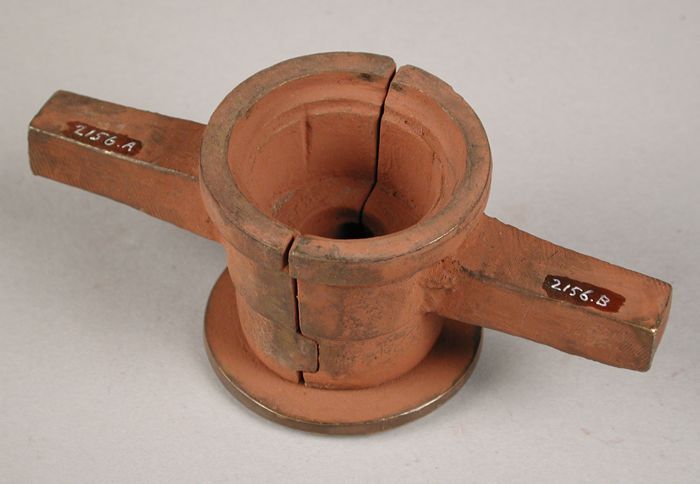 Drie delen van vierdelige bronzen mal voor hals van ...