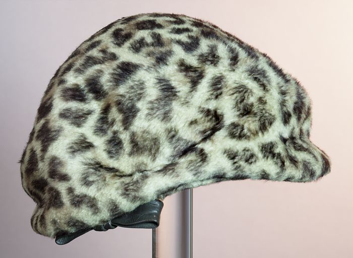 Damesbaret, rond model, van imitatie bont met strikje