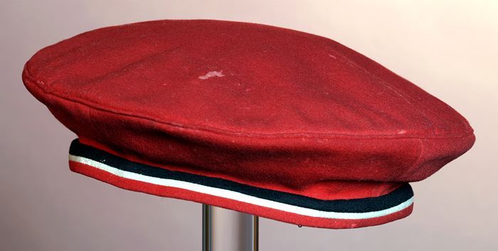 Baret van rood vilt met zwart-wit biesje