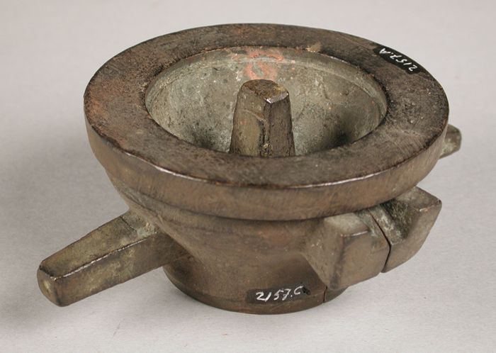 Vierdelige bronzen mal voor vijzeltje; mogelijk kind...