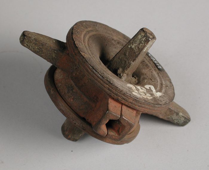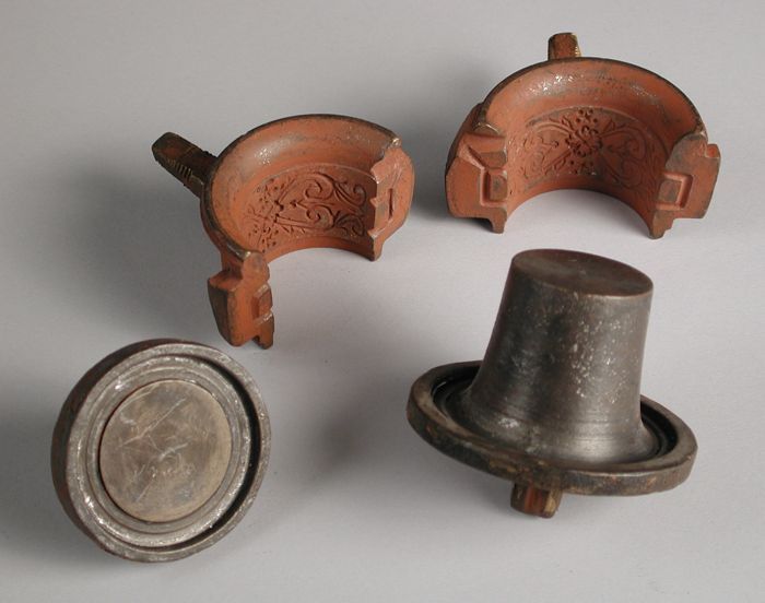 Vierdelige bronzen mal voor bovenkant van potje