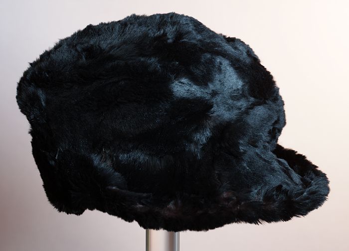 Ronde damesbaret van fijn zacht zwart bont, voering ...
