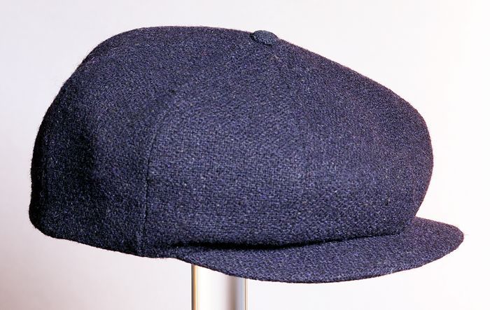 Jongenspet van donkerblauwe wol met visgraatpatroon,...