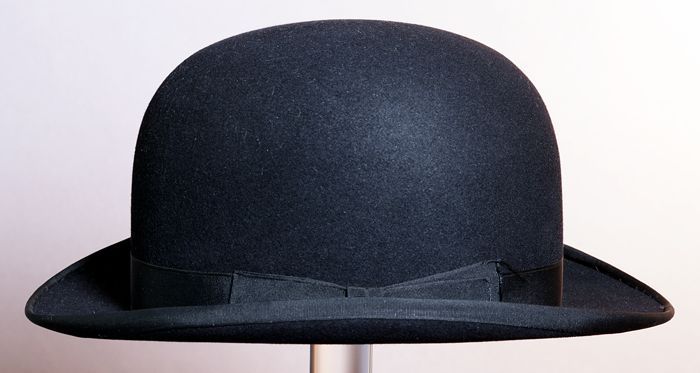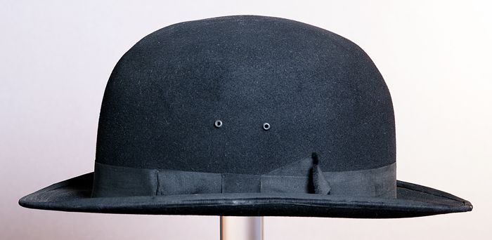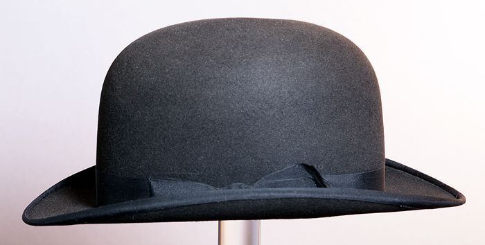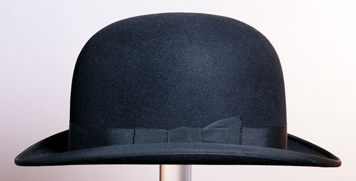 Zwarte, ovale bolhoed, leren entree