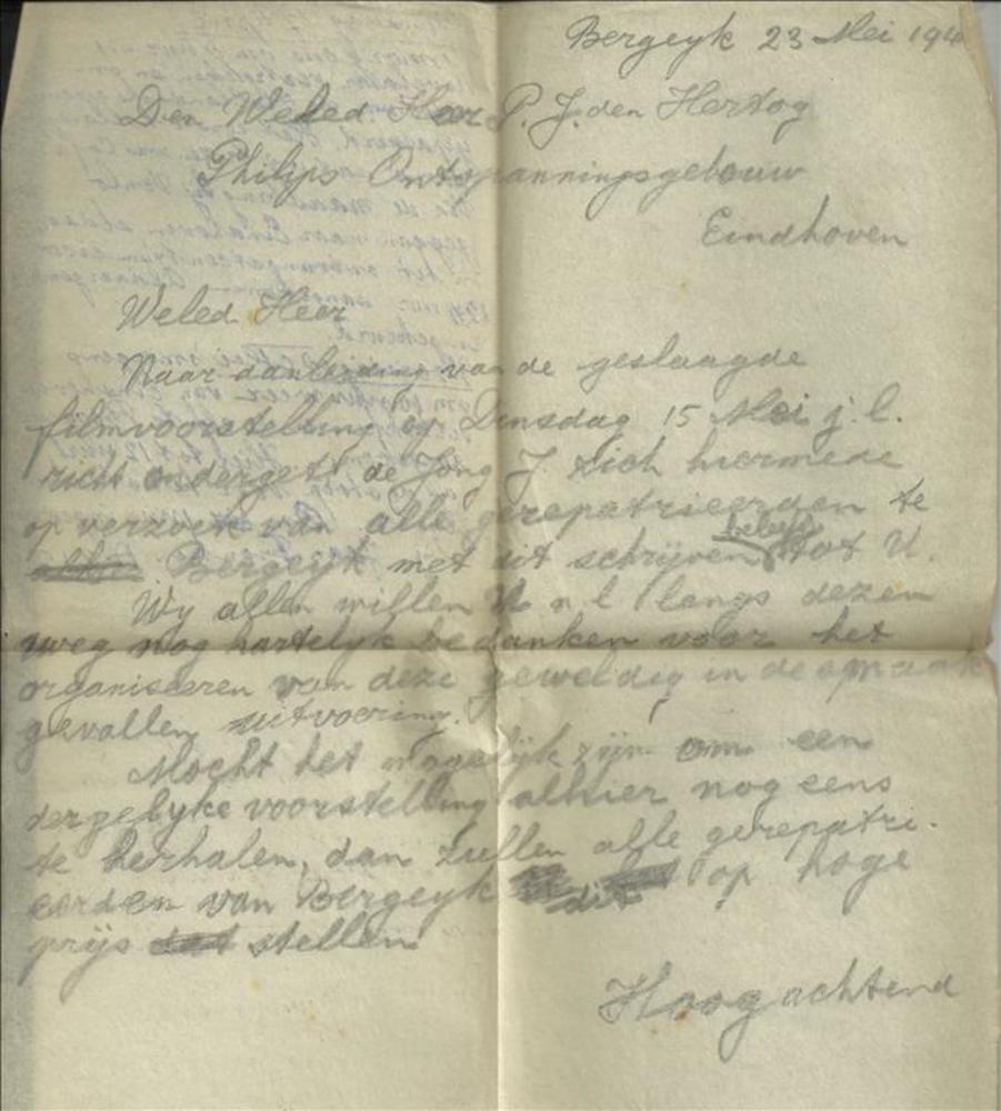 Brief van J. de Jong aan P.J. den Hertog van het Phi...