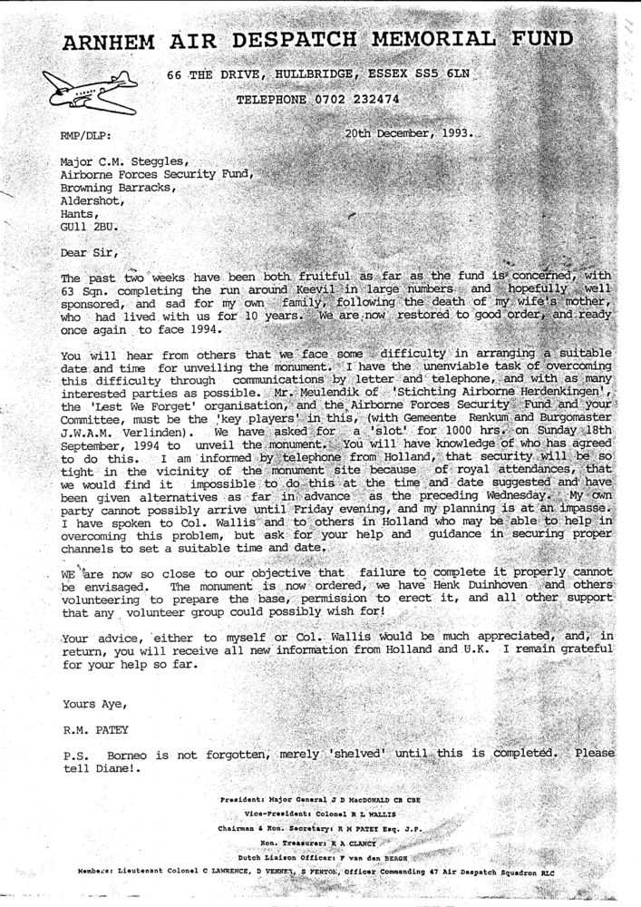 van de Arnhem Air Despatch Memorial Fund aan Major S...