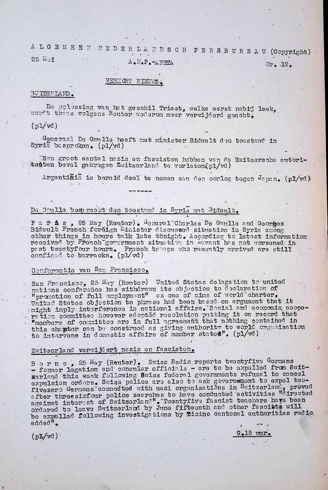 Algemeen Nederlandsch Persbureau, mededelingen, 25 m...