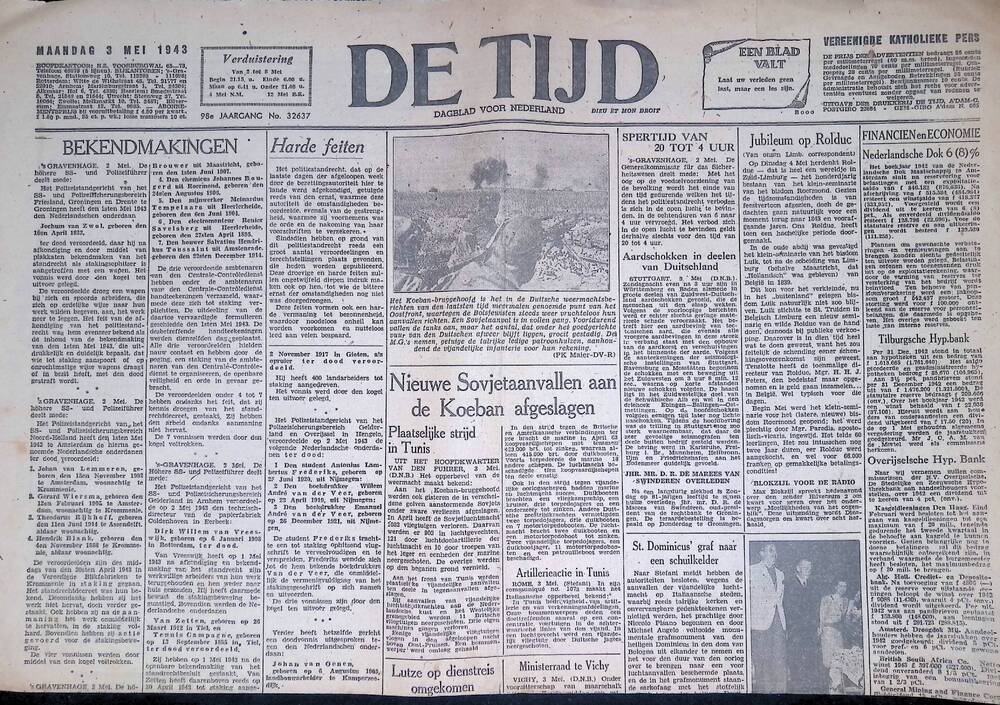 De Tijd. Dagblad voor Nederland. 3 mei 1943.