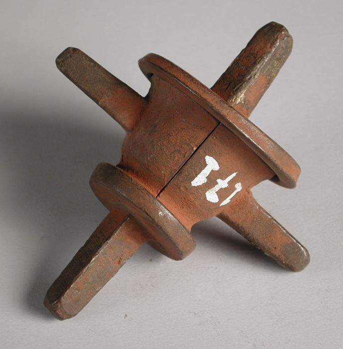Drie delen van vierdelige bronzen mal voor een bekertje