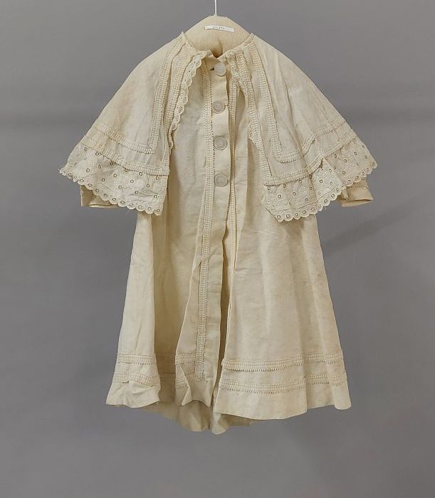 Kinderjas van wit rib piqué met een vaste pelerine, ...