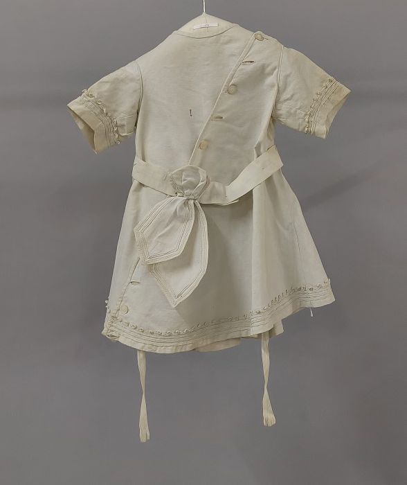 Kinderjurk, schortmodel van crèmekleurig katoen met ...