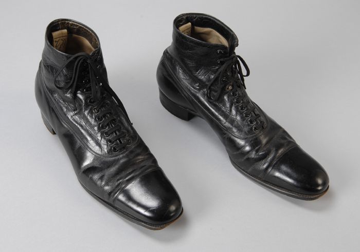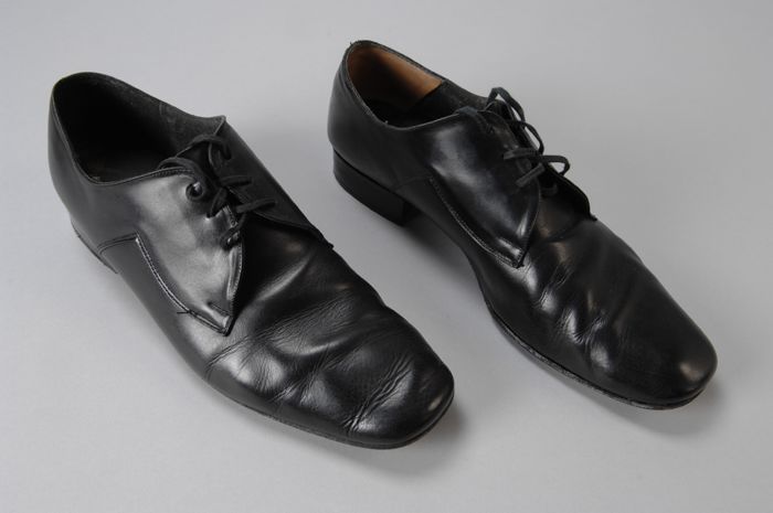 Zwarte leren herenschoen met vetersluiting, lange, s...