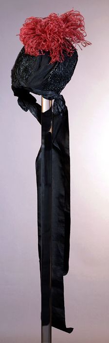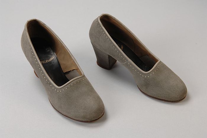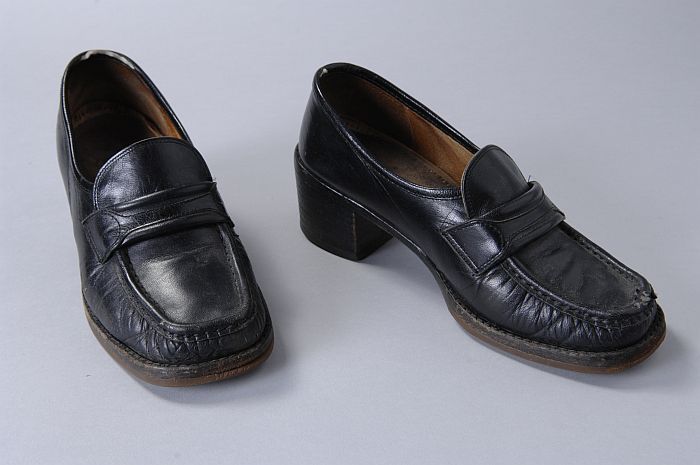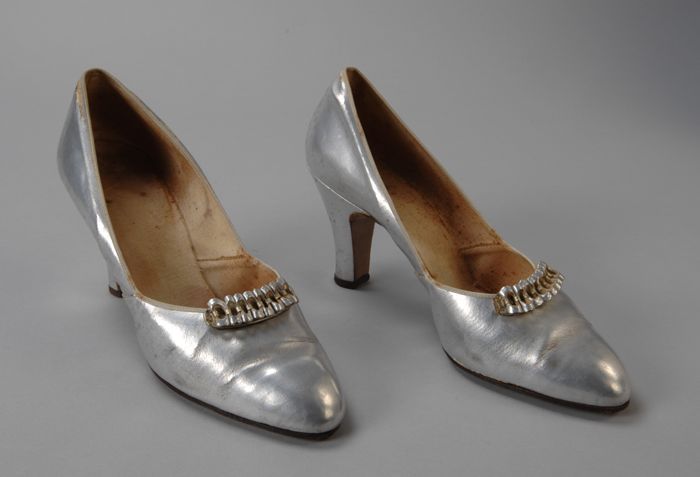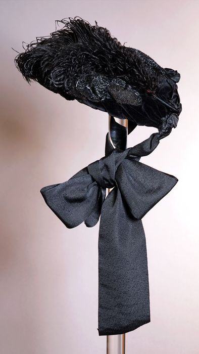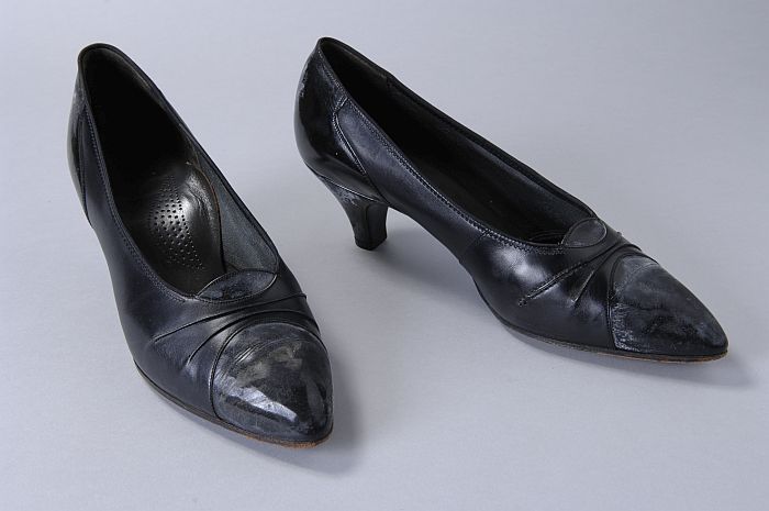 Zwart satijnen pumps met hoge louishak, vrij hoog op...