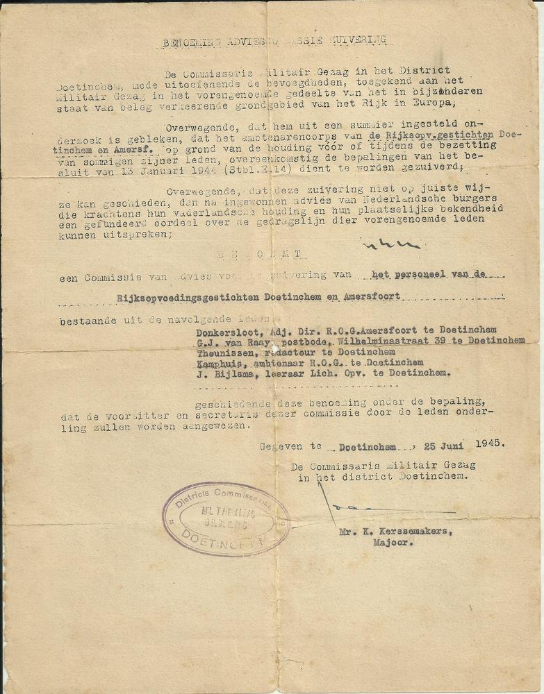 Benoeming Adviescommissie Zuivering