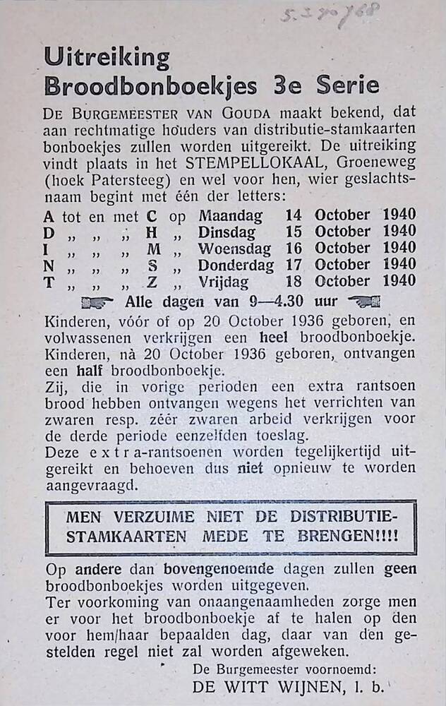 Uitreiking, Broodbonboekjes 3e serie
