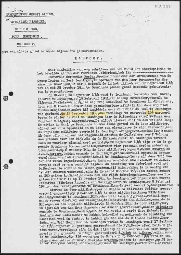 Rapport Marechaussee Gewest Arnhem, Afdeling Nijmege...