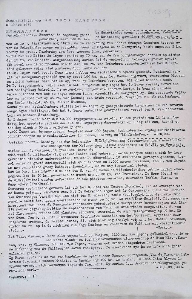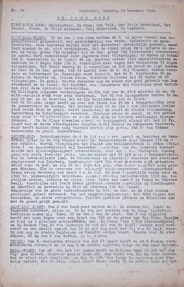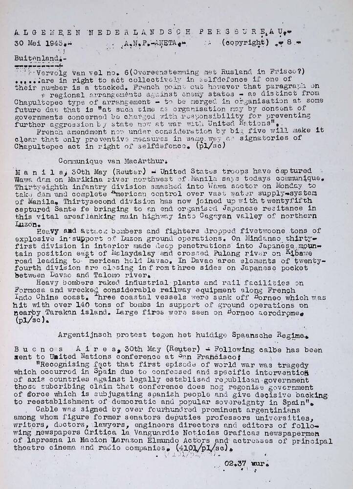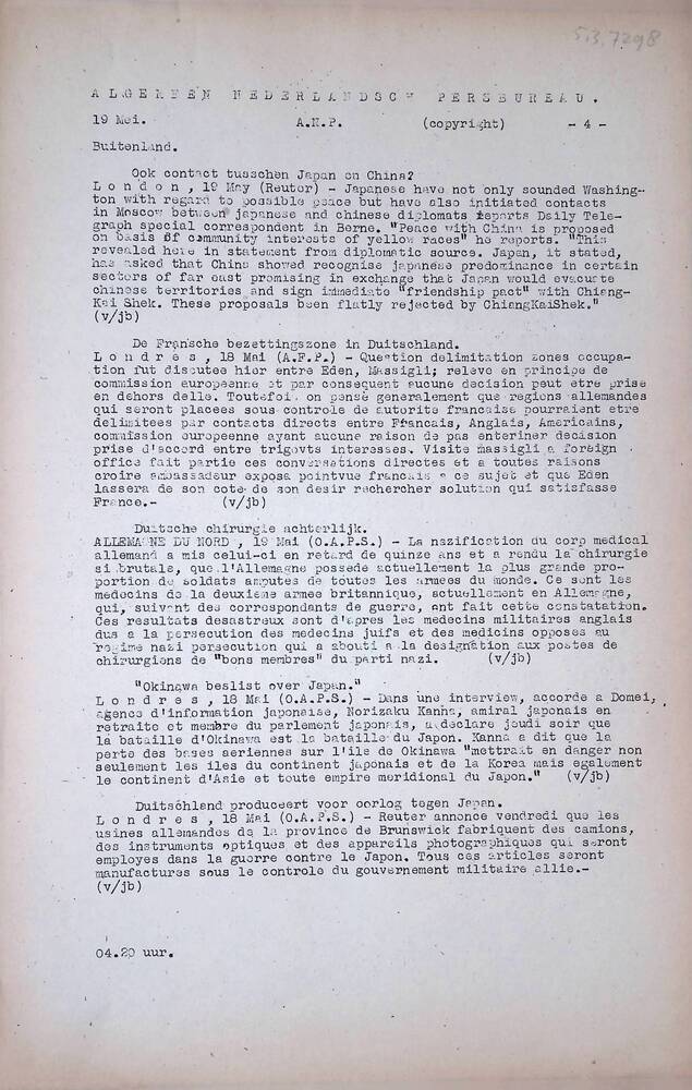Algemeen Nederlandsch Persbureau, mededelingen, 19 m...