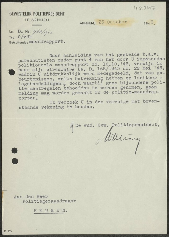 Maandrapport No. 960/1943 Gewestelijk politiepreside...