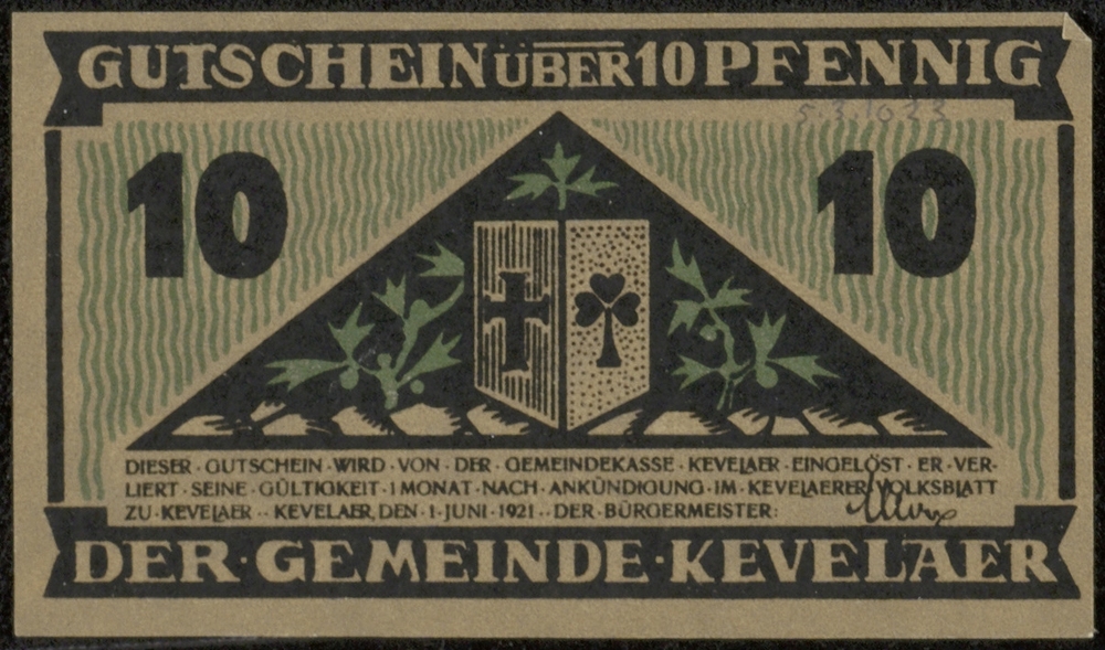 Bankbiljet, Gutschein, Gemeente Kevelaer, 10 Pfennig