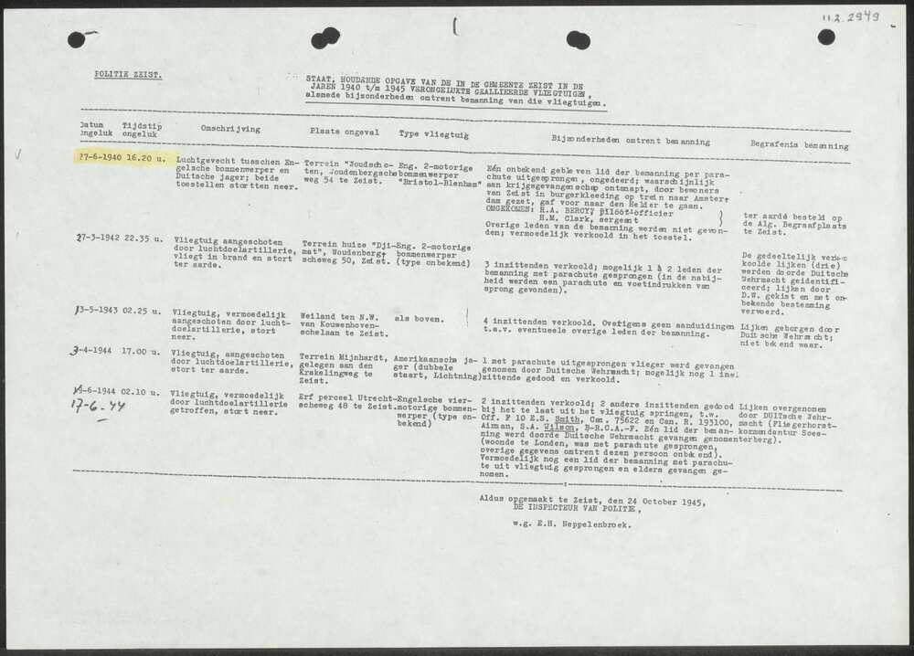 Opgave Gemeente Zeist van de in de jaren 1940 t/m 19...