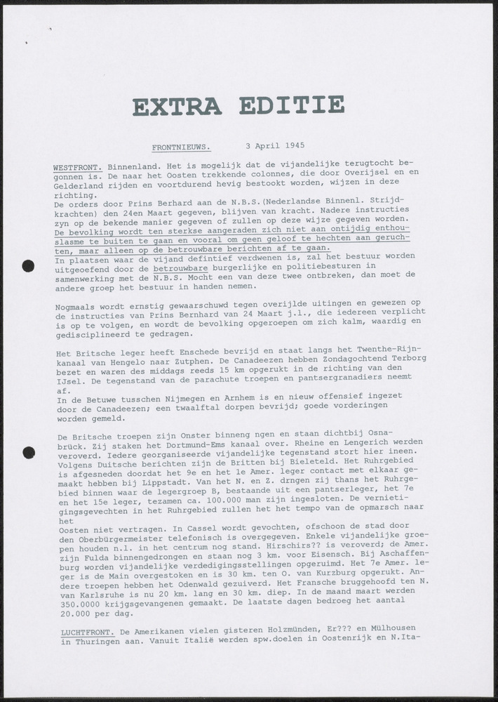 Extra editie, Frontnieuws 3 april 1945.