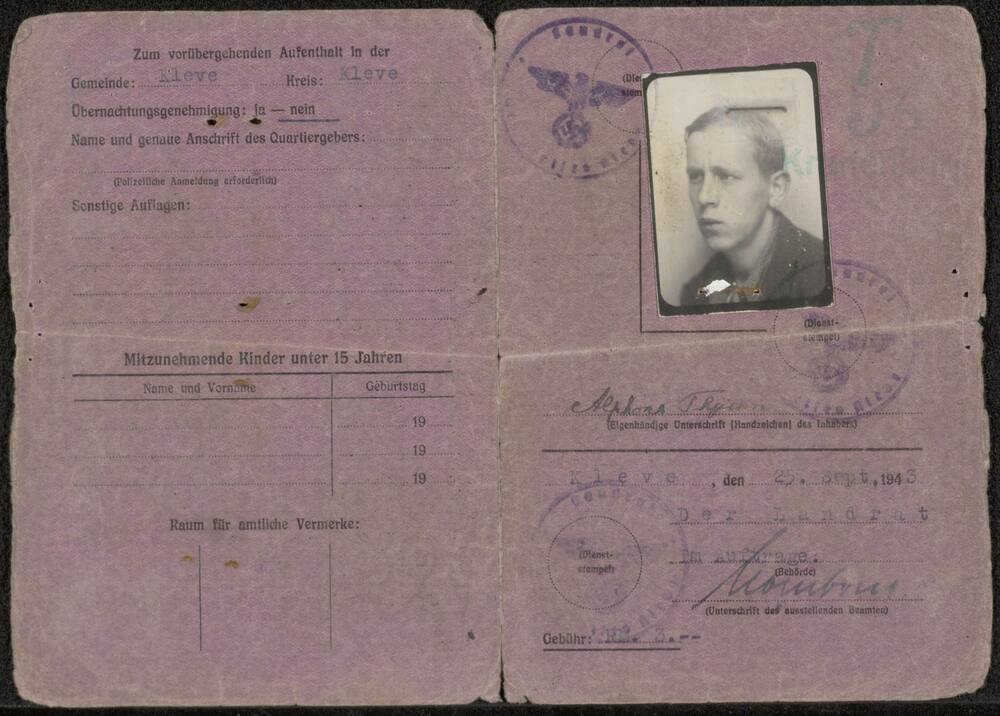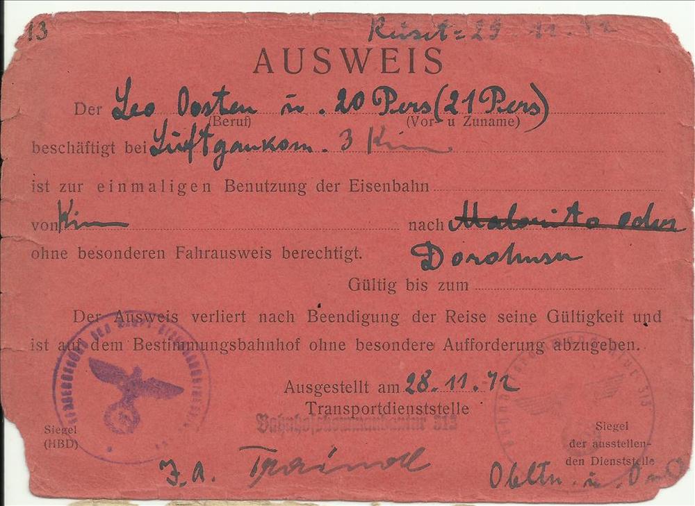 Ausweis, reisbewijs op naam van Leo Oosten.