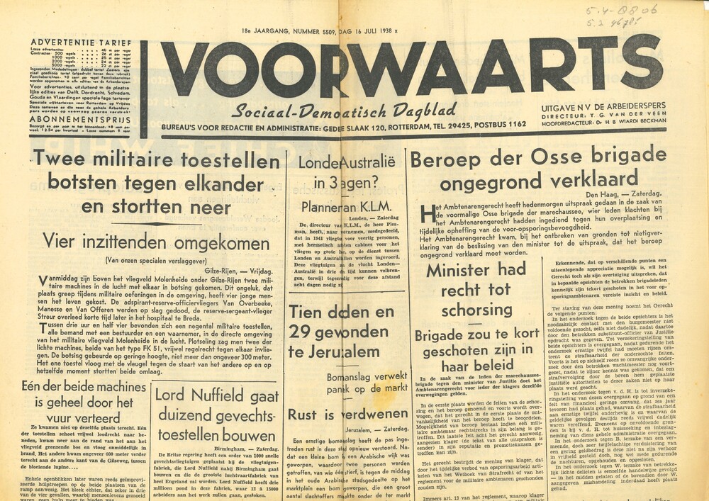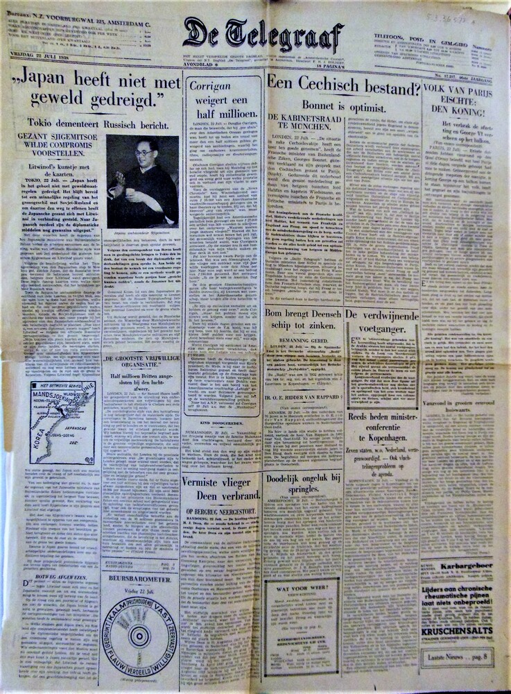 "De Telegraaf" van "Vrijdag 22 juli1938" "Avondblad"...