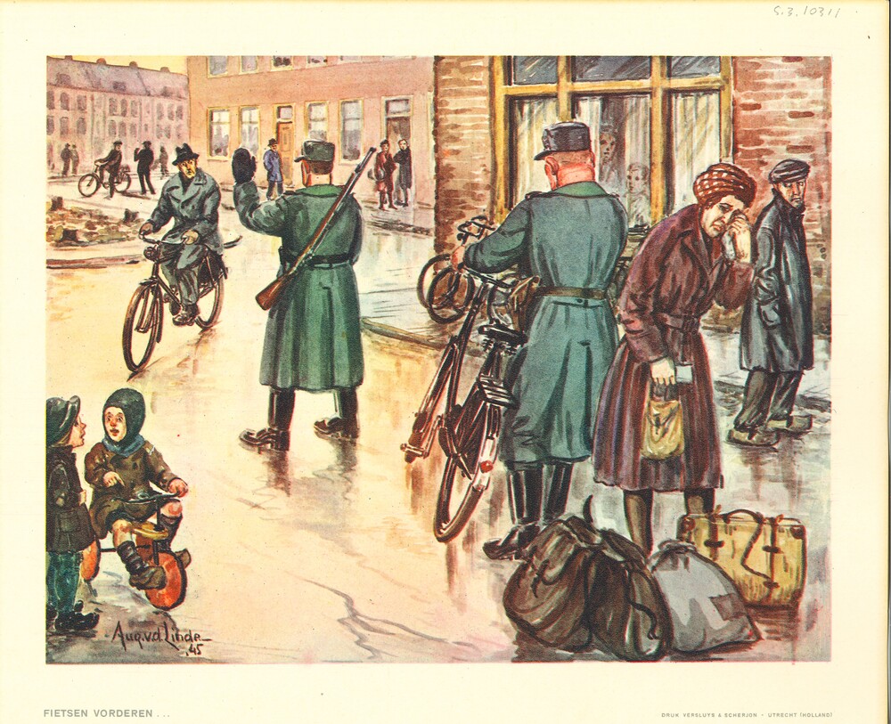 Vel: tekening "Fietsen vorderen..." door Aug. v.d. L...