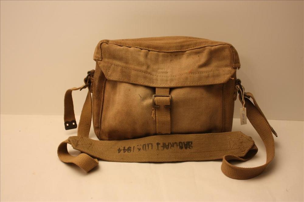 Canvas tas , Brits model , groot model, opdruk M.E.C...