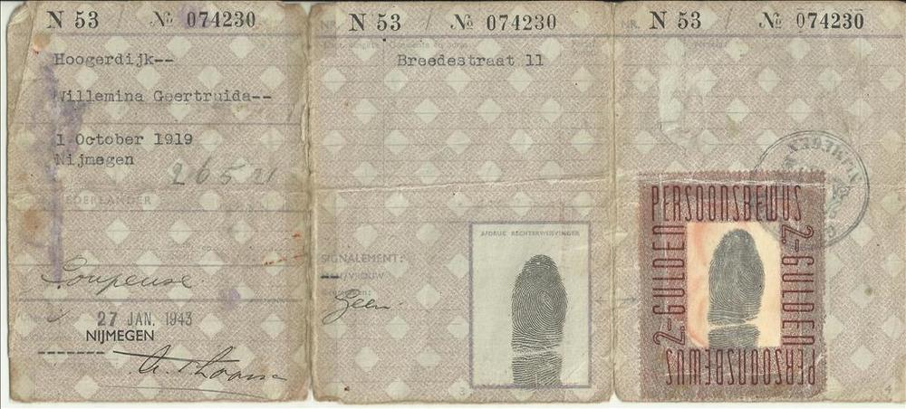 Persoonsbewijs op naam van Hoogerdijk, Willemina Gee...
