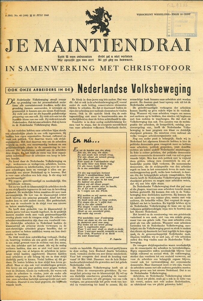 Berichtenblad van Je Maintiendrai en Christofoor, 20...