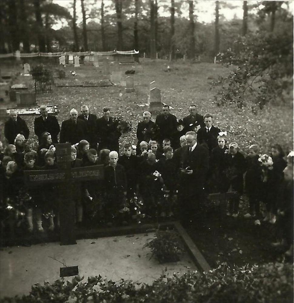 kinderen en volwassenen bij graf vliegers te Hummelo...