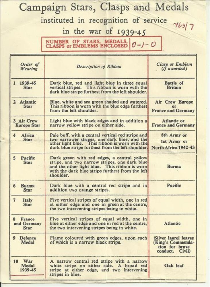 certificaat behorende bij de Campaign Stars, Clasps ...