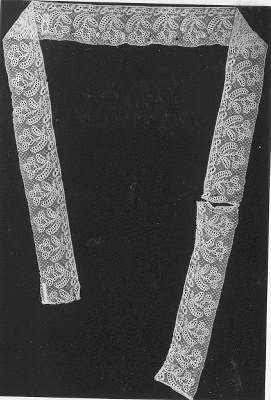 Zeer lange strook kloskant, aan elkaar geklost