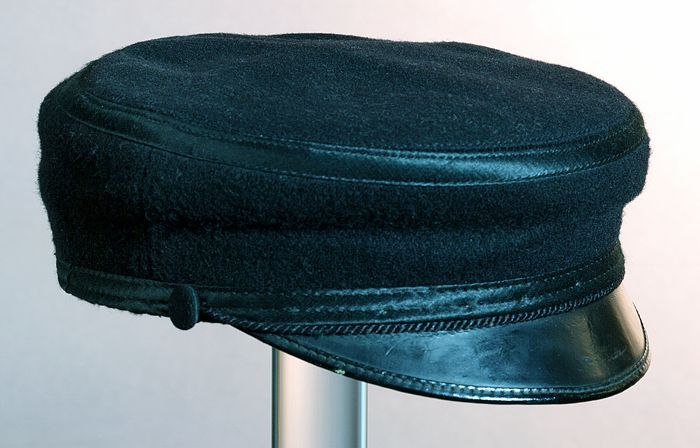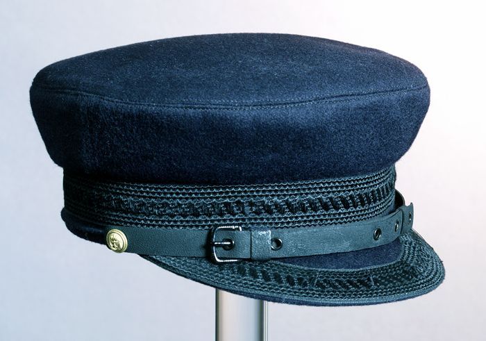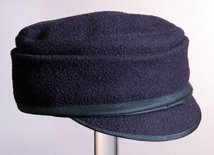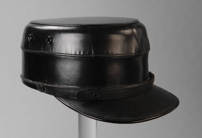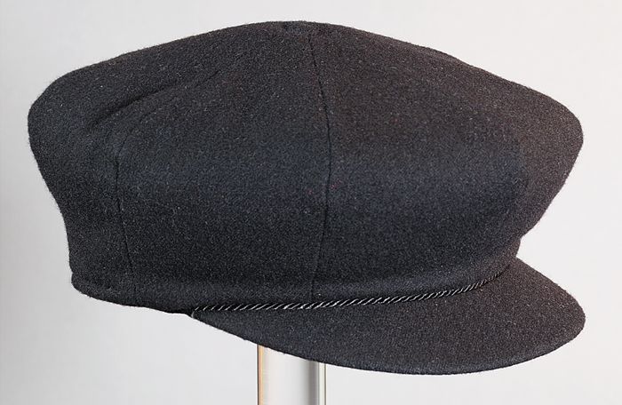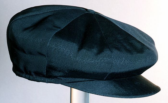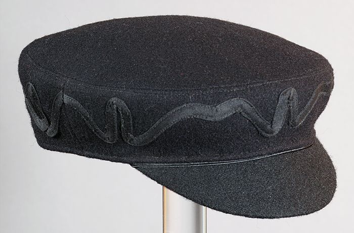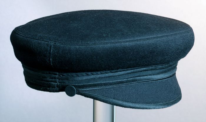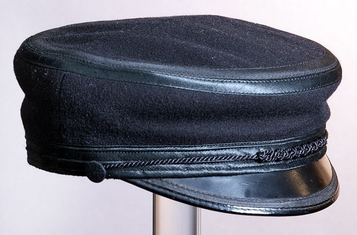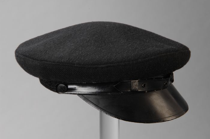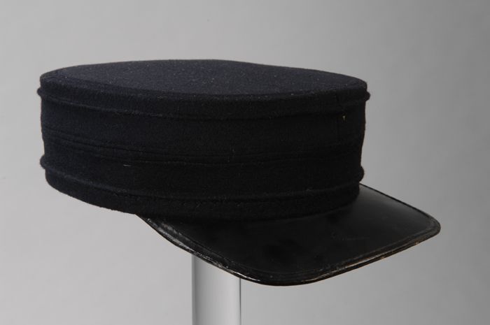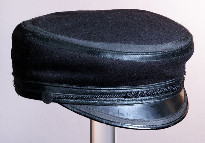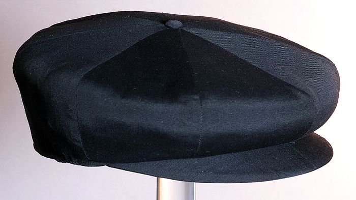 Ronde zwarte cap voor jongens (?), type Duitse caout...