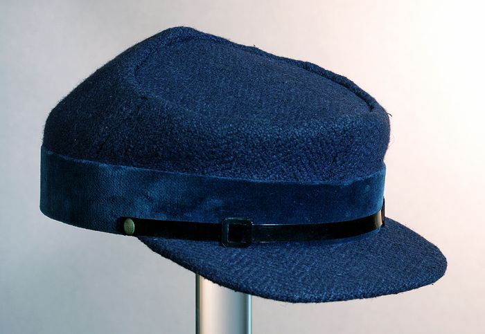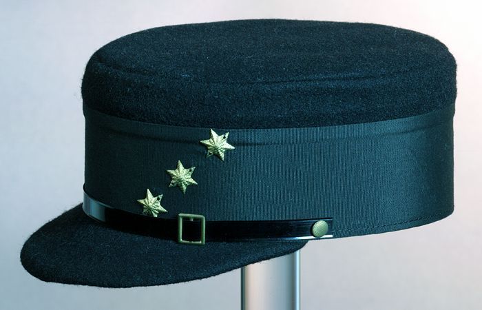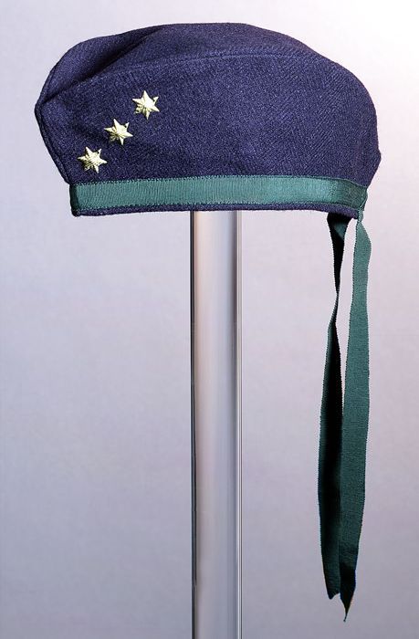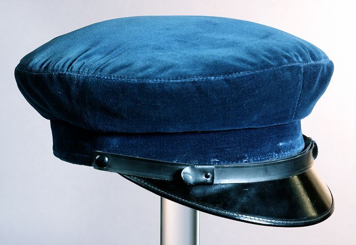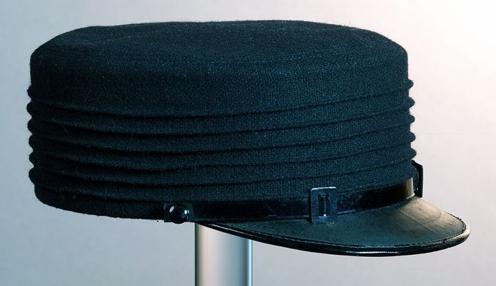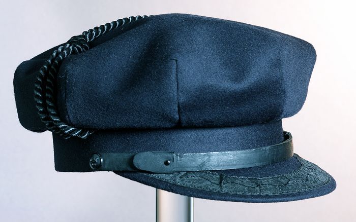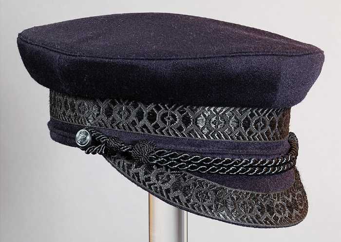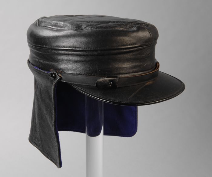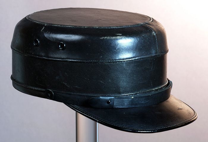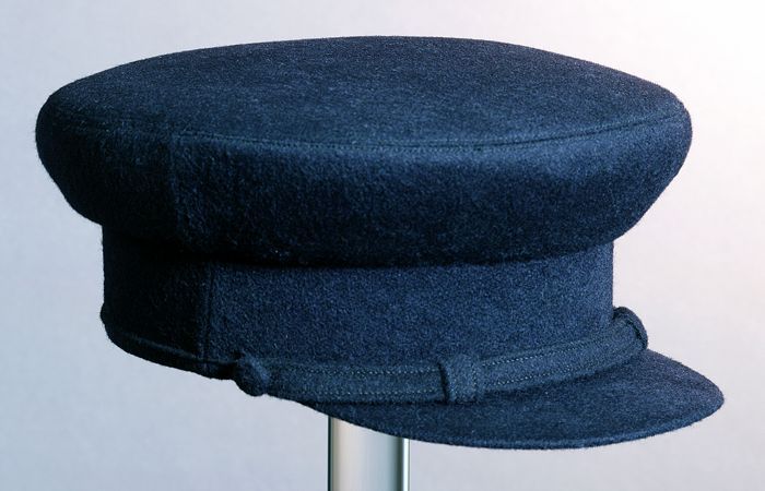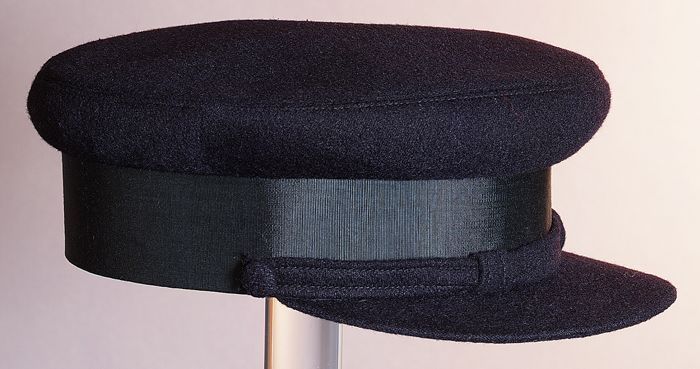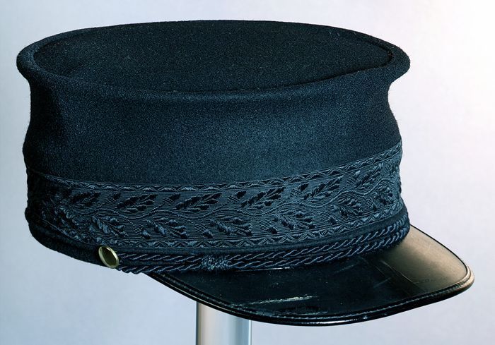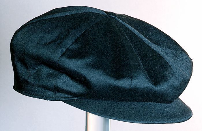 Ronde zwarte cap voor jongens (?), type Duitse caout...