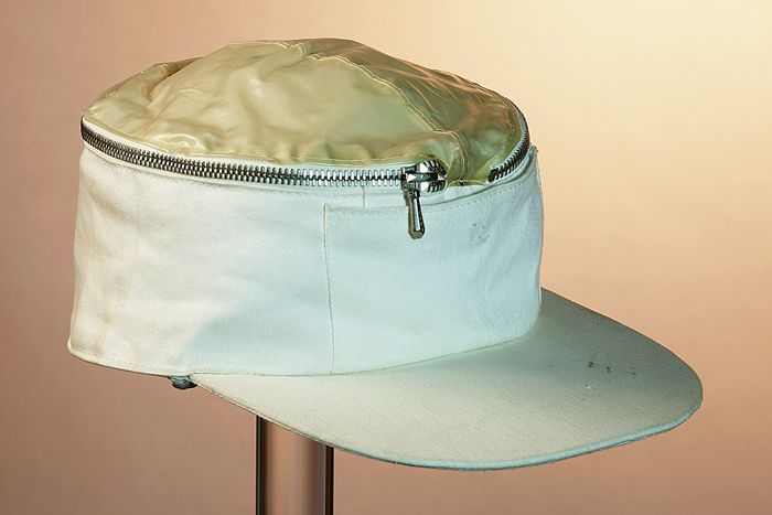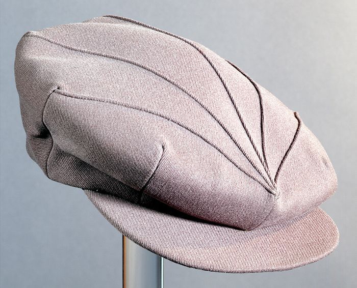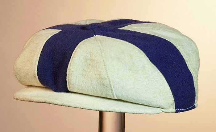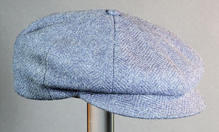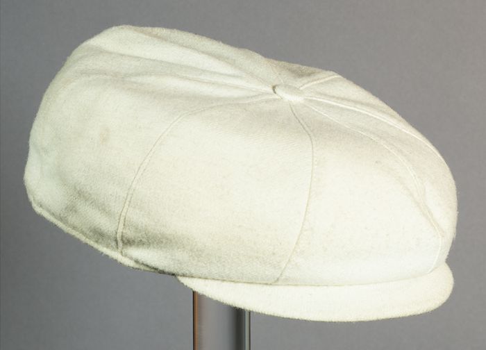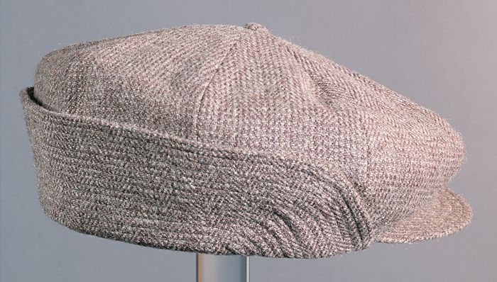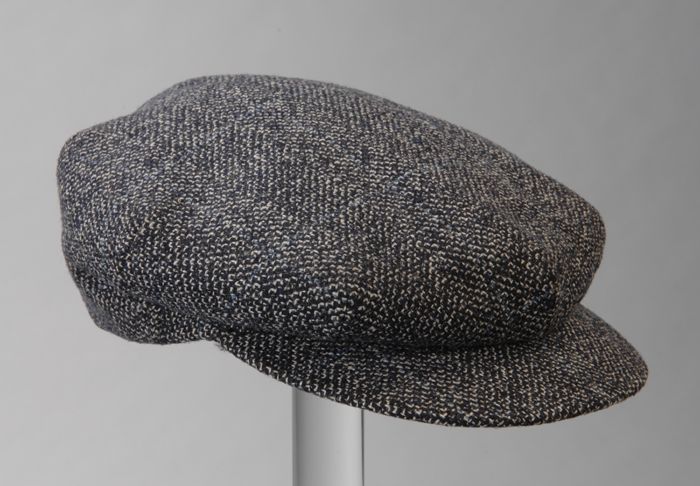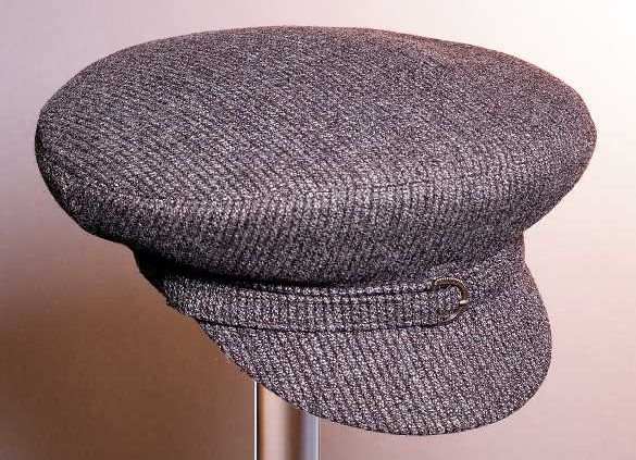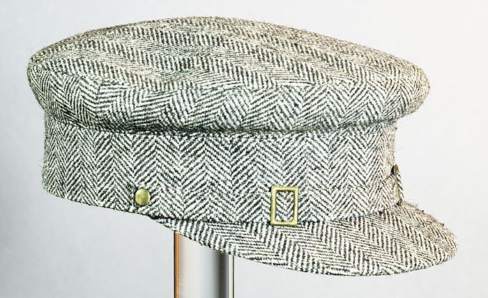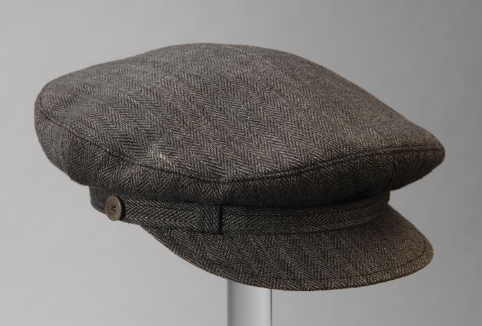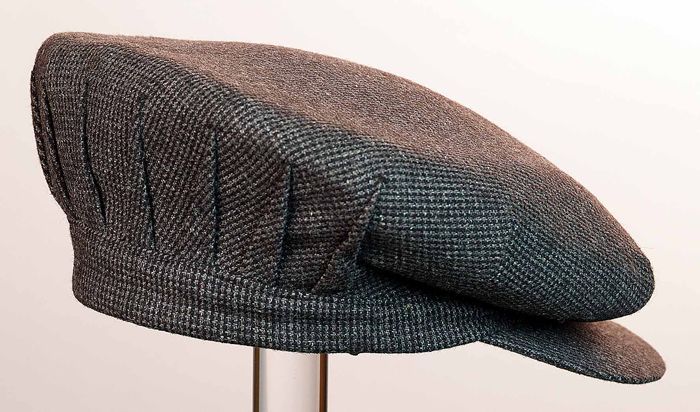 Bruin-witte achtpandige herenpet, klep met drukknoop...