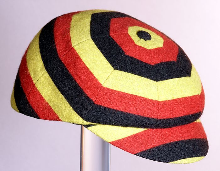Rood, geel en zwart gestreepte jongenspet, Eton spor...
