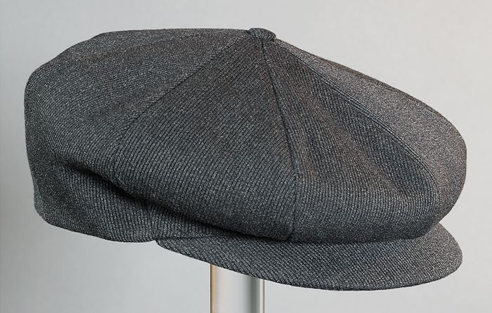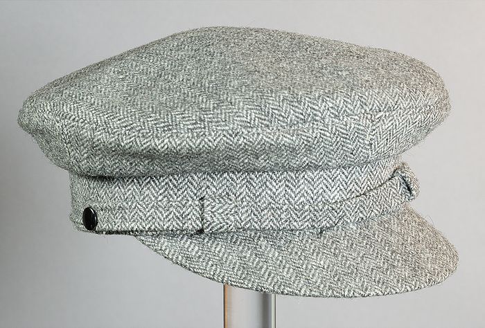 Ovale grijs-zwarte herenpet, klep met drukknoop, sat...