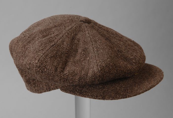 Herenpet met klep, geheel van bruin gemêleerde wol i...
