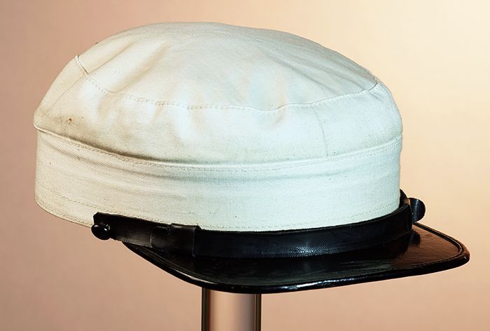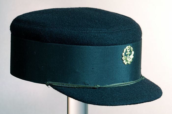 Bruine, ronde matrozenpet, "KONINKLYKE MARINE", twee...