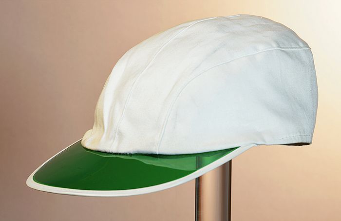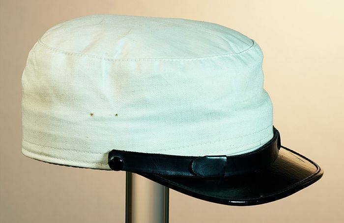 Ovale zwarte herenpet gebruikt door slager of kaasboer