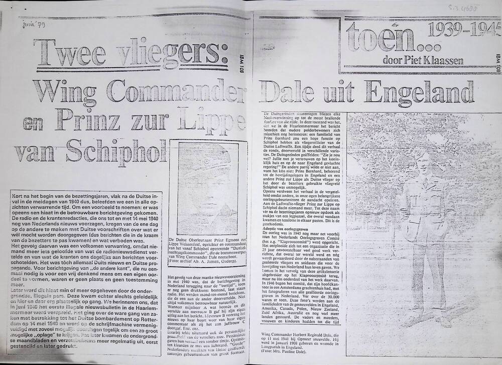 Overdruk : Kranten artikel "Twee vliegers : Wing Com...
