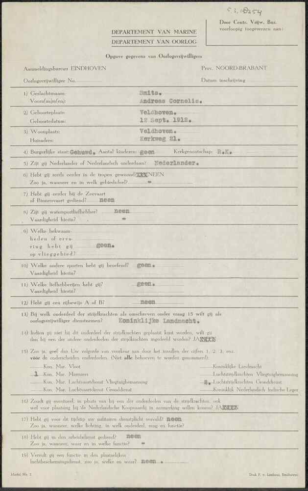 Aanmeldingsformulier oorlogsvrijwilliger Aanmeldings...