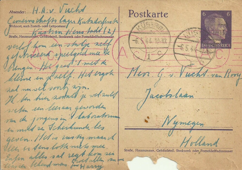 Briefkaart voor mevr. Truus van Vucht van Rooij