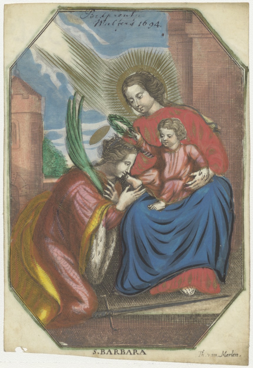 H. Barbara met Maria en Christuskind, ingekleurd, kz...