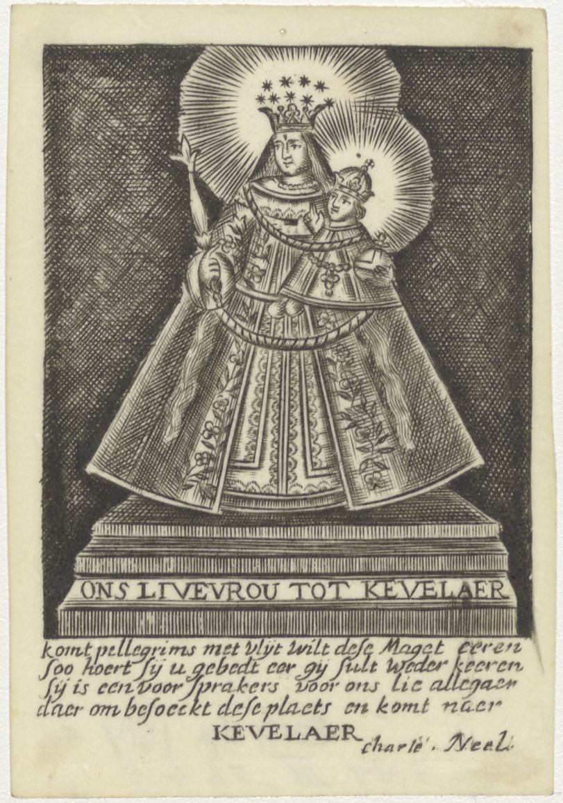 Maria met Christuskind en twee engeltjes, kz. Bid vo...